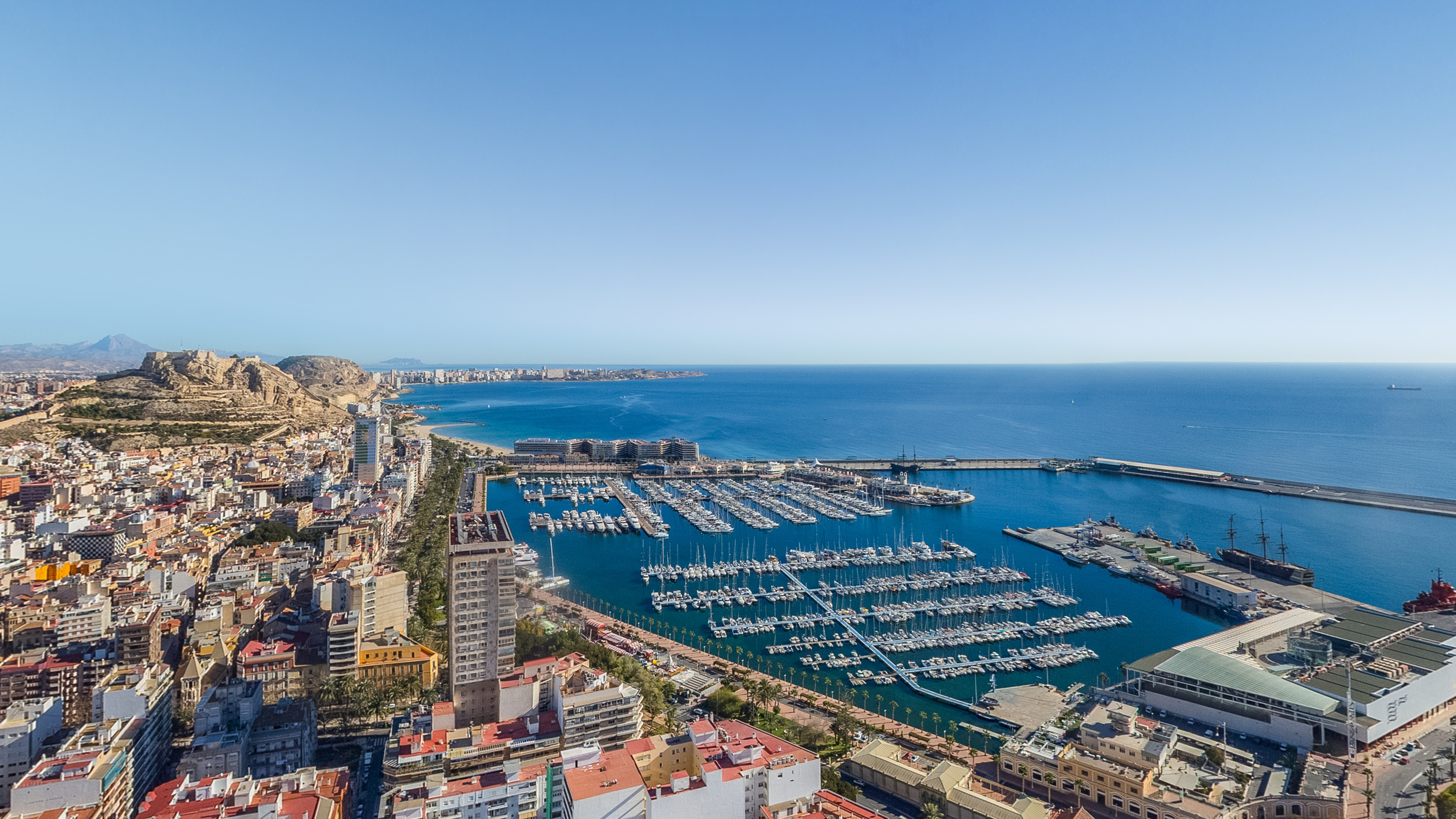 The well-visited harbor area, which is accessed directly from the center, is located at the foot of Mount Benacantil, where the beautiful castle/fortress of Santa Barbara is located, dating from the 9th century.